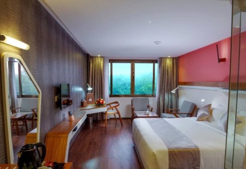 In a modern building with a tile and brick facade, this upscale hotel in the chic Link Valley neighbourhood is 1 km from State Highway 41, 5 km from Thrikkakara Temple and 6 km from Wonderla Kochi amusement park. Polished rooms with wood floors and bright accents offer flat-screens, Wi-Fi and minibars, as well as safes, and a tea and coffeemaking facilities. Some have glass-enclosed marble bathrooms. The 1-bedroom suites add separate living/dining areas. Room service is offered 24/7. There's a relaxed international restaurant, a banquet hall and a business centre. Breakfast is available.