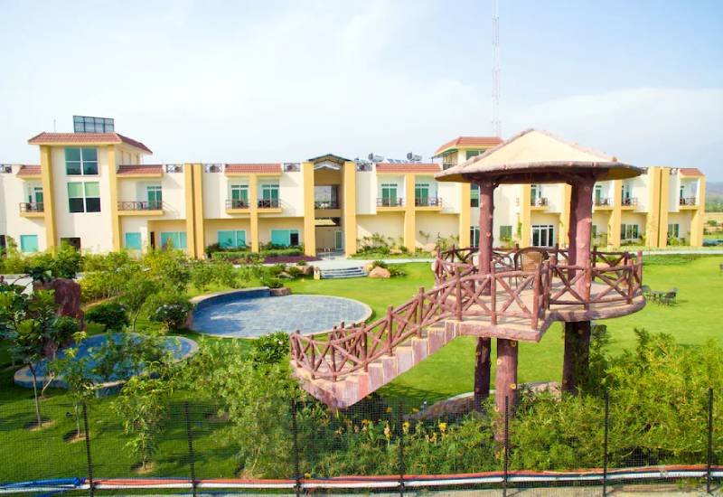 In the foothills of the Himalayas, this serene resort on a 2-hectare estate with modern cottages is 9 km from the Jim Corbett National Park, part of the Corbett Tiger Reserve. Unfussy rooms have Wi-Fi access (fee), flat-screens, minibars and balconies, as well as tea and coffeemakers. Upgraded rooms add separate living rooms and/or whirlpool baths. Family quarters have 2 bedrooms. Rooms service is available 24/7. A breakfast buffet is free. Other amenities include a bright restaurant, an outdoor pool and a game room, plus sports fields, and a spa with a sauna, a steam room and a hot tub. There's also a lake with a fountain and a look-out tower.