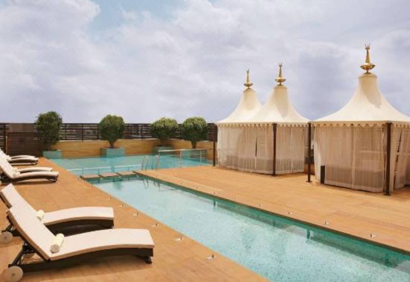 A 10-minute walk from Bais Godam train station, this modern, upscale hotel is 4 km from the grand Birla Mandir temple and 6 km from the City Palace. The casual rooms feature neutral tones, and floor-to-ceiling windows with city or mountain views. All are equipped with Wi-Fi (fee), flat-screen TVs and minibars. Upgraded rooms add private balconies, and some have access to an exclusive lounge providing complimentary breakfast, snacks and drinks. Suites add separate living rooms and sunken tubs. The hotel offers 2 restaurants, a trendy bar and a lounge. Other amenities include an outdoor pool, a fitness room, and a spa area with massage services.