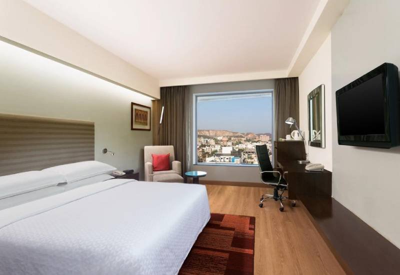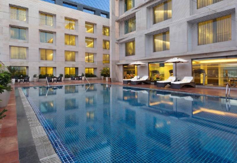 A 15-minute walk from Gandhinagar Jaipur railway station, this high-end hotel in a modern building overlooking the Aravalli mountains is 9 km from the iconic pink Hawa Mahal palace. Featuring city or hill views, the contemporary rooms and suites offer flat-screens, minibars, and tea and coffeemaking facilities. Upgraded rooms add free Wi-Fi. Suites have living areas. Room service is available. Parking and breakfast are free. There's an airy restaurant, a trendy bar and a warm lounge, as well as an outdoor pool, a 24-hour fitness room and a spa.