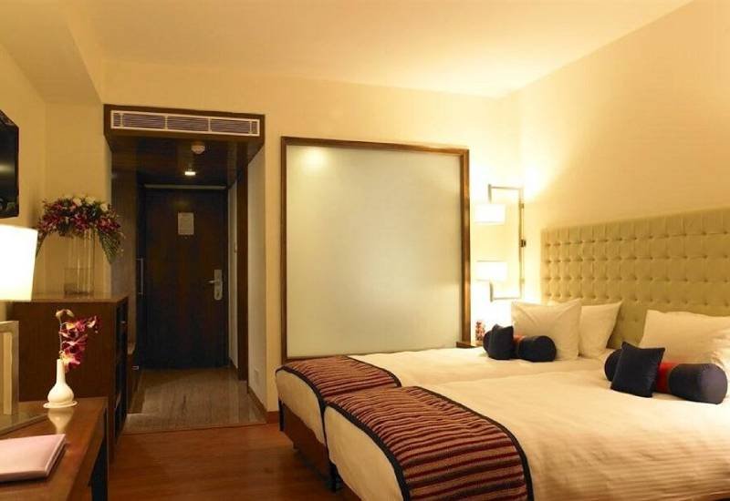 This upscale hotel is 2.1 km from Jaipur International Airport, 11 km from City Palace complex and 28 km from Nahargarh Fort. The elegant rooms with contemporary decor provide flat-screen TVs, DVD players, free Wi-Fi and minibars, as well as tea and coffeemaking facilities. Upgraded rooms add private plunge pools. Room service is available. The hotel offers a free buffet breakfast. Additional amenities include a restaurant, a 24/7 coffee shop and a stylish lounge bar serving Thai and Mexican food. There's also a rooftop pool, meeting space and complimentary airport transfers for guests in upgraded rooms.