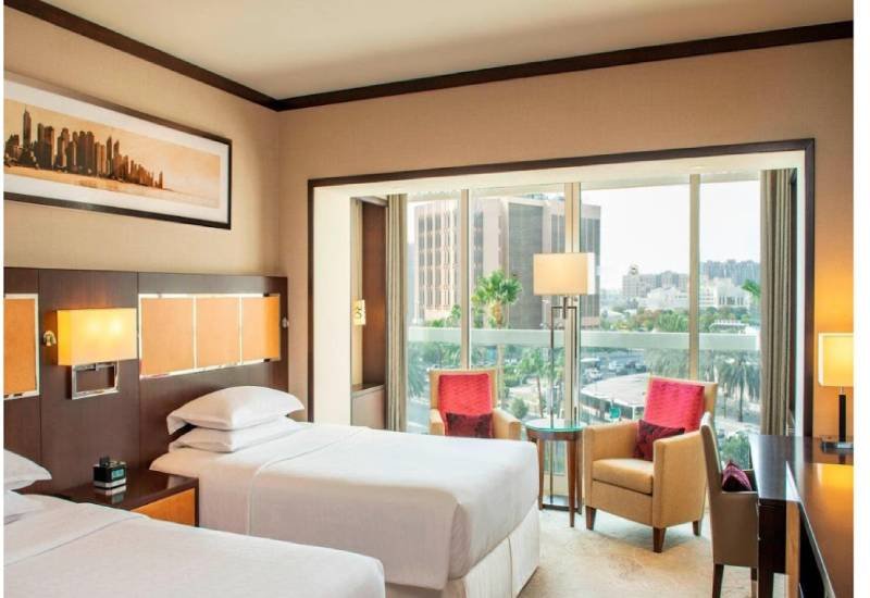 Set along Dubai Creek, this landmark luxury hotel is 11 km from The Dubai Mall and 12 km from Al Mamzar Beach Park. Chic rooms include minibars, free Wi-Fi and flat-screen TVs. Upgraded rooms add access to a lounge offering complimentary breakfast and happy hours. Luxurious suites add living rooms and panoramic views. Free perks include valet parking and mall/beach shuttle service. A waterfront Japanese restaurant provides an open kitchen, while a traditional English pub has a sports theme. There’s also a 24-hour gym, as well as massage services, 10 meeting rooms, and a posh outdoor pool with a bar and a marina backdrop.