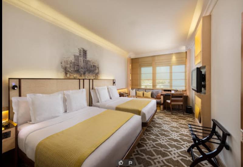 This upscale, glass-panelled hotel is 10 km from the Dubai World Trade Centre and 4 km from the Gold Souk. The modern rooms feature free Wi-Fi, flat-screens, minibars, and tea and coffeemaking equipment. Upgraded rooms add whirlpool tubs, plus free breakfast, airport transfers and access to a lounge with evening appetizers and drinks. Suites have living rooms and extra bathrooms. Room service is available 24/7. A breakfast buffet is available. There are also 4 restaurants serving Tex-Mex, Indian, Chinese and Middle Eastern cuisine, plus a bar, a nightclub, a cafe and a pastry shop. A pool and a gym are also available.
