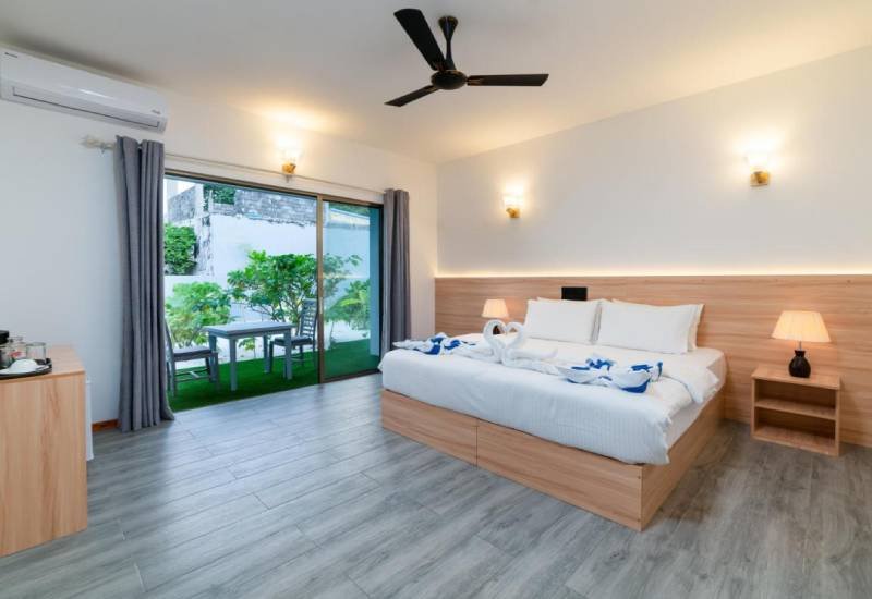 Situated 50 metres from Ukulhas Beach, La Palma Villa provides accommodation with a shared lounge, a garden and a 24-hour front desk for your convenience. Free WiFi is available throughout the property. This family room has a balcony, electric kettle and air conditioning.