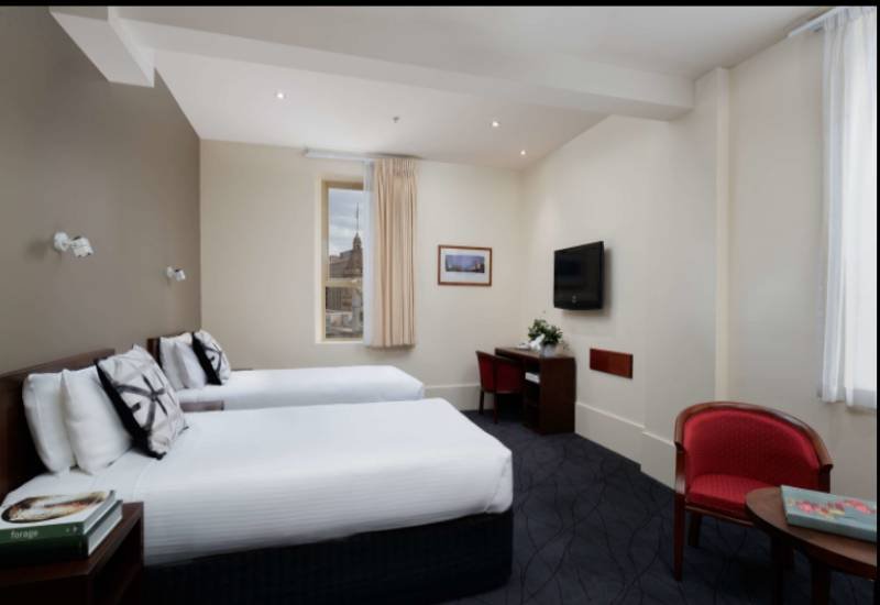 Near shops, restaurants and entertainment in the city centre, this relaxed hotel is a 6-minute walk from Flinders Street train station, a kilometre from the National Gallery of Victoria, and 2 km from the Crown Casino and Entertainment Complex. The unassuming rooms feature free Wi-Fi, flat-screen TVs, desks, and tea and coffeemaking facilities. There's an onsite restaurant serving modern cuisine and a breakfast buffet, plus an indoor pool. Other amenities include a hot tub, a sauna and a fitness room. Indoor parking is offered for a fee.