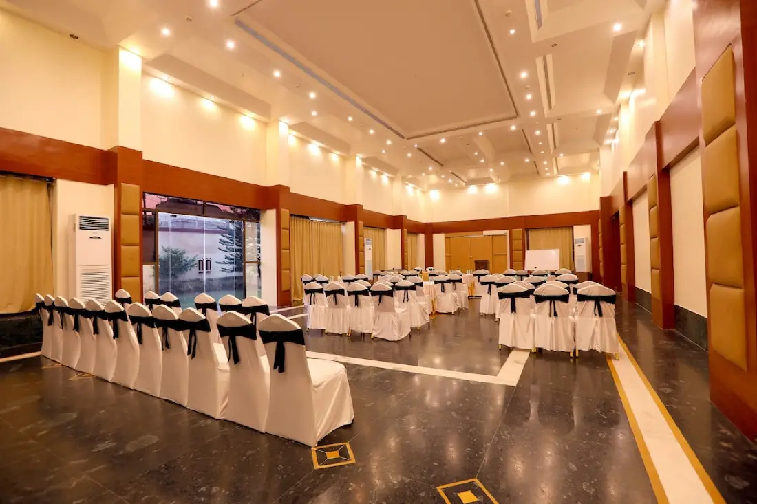 Set among gardens in an area known for religious sites, this relaxed, polished hotel with a glass facade lies along the NH58 national highway. It's 2 km from Bharat Mata Mandir, a famous Hindu shrine, and 5 km from Har Ki Pauri, a ghat on the Ganges River.